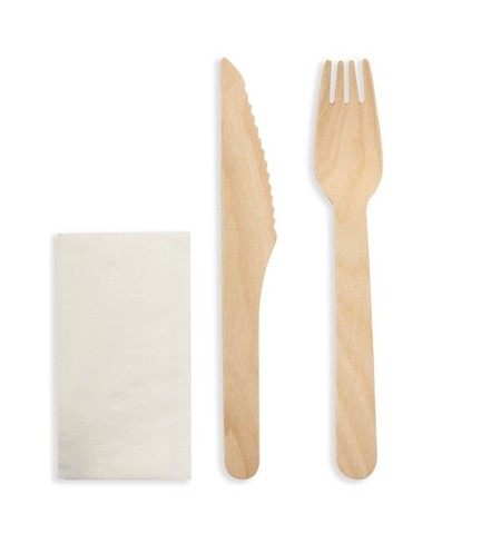 Ensemble emballé individuellement de paquets de couverts en bois jetables fourchette couteau et serviette